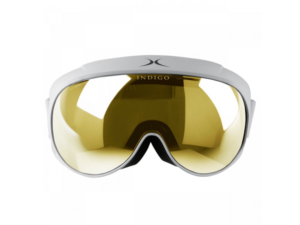 Lyžiarske okuliare Indigo Voggle Mirror Gold v bielom prevedení so zrkadlovými sklami sú jedinečné vďaka svojmu netradičnému dizajnu. Spoločnosť INDIGO po prvýkrát kombinuje črty slnečných a lyžiarskych okuliarov. Vznikla tak úplne nová kategória v oblasti okuliarov. Revolučná značka INDIGO VOGGLE je symbióza vlastných, odnímateľných, dokonale tesniacich okuliarov a jedinečného zorného poľa 230°. Voggle sú použiteľné aj s dioptrickými okuliarmi, poskytujú neuveriteľný pocit z pohľadu a s automatickou priľnavosťou sú kompatibilné so všetkými športovými prilbami. Ideálny celok dosiahnete v kombinácii s jedinečnými lyžiarskymi prilbami Indigo. Voggle tak nahrádza klasické riešenia okuliarov a šošoviek a má patentovaný dizajn spoločnosti Schwabe & Baer Entwicklungs GmbH.